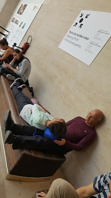 Trying to rest after all of the walking inside of the Louvre while we wait for CR to be done |